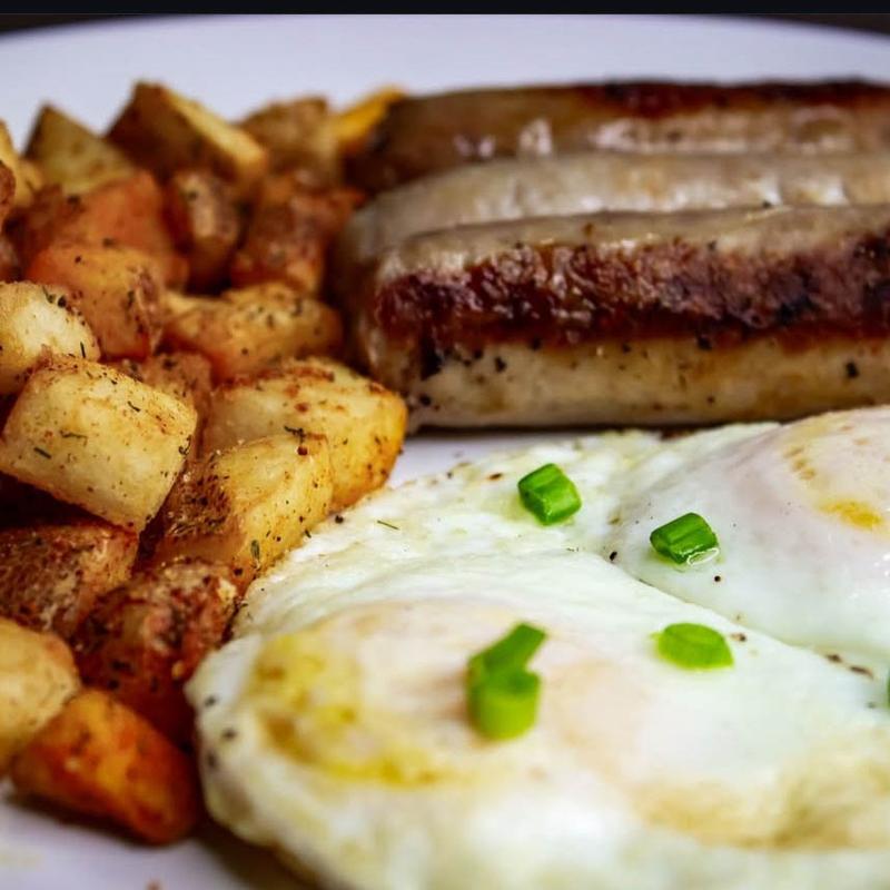 2 eggs any style, choice of bacon or sausage, breakfast potatoes
