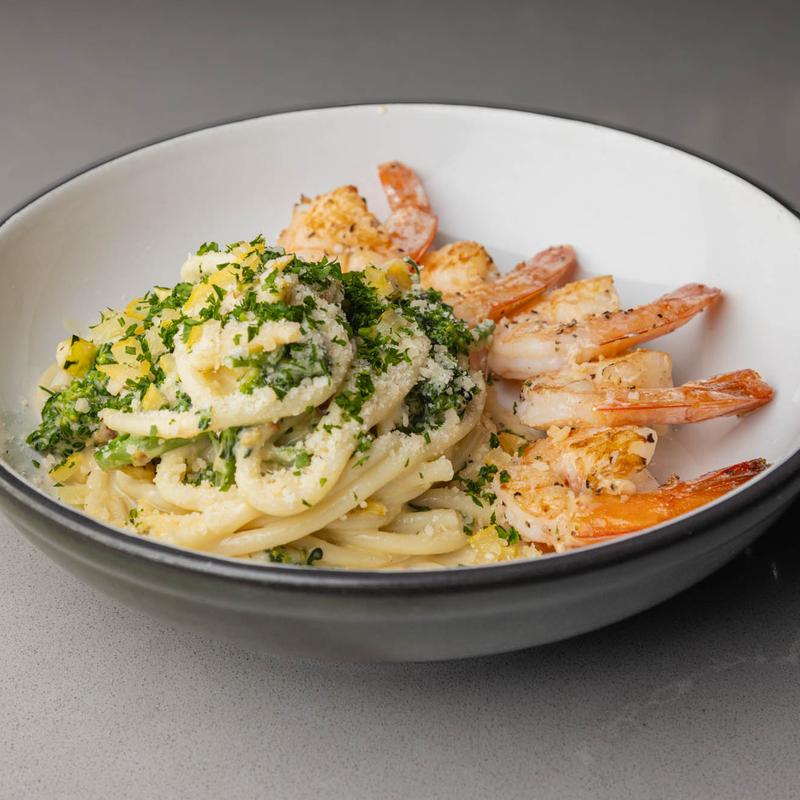 Shrimp, seasonal vegetables, white wine cream, parmesan, preserved lemon