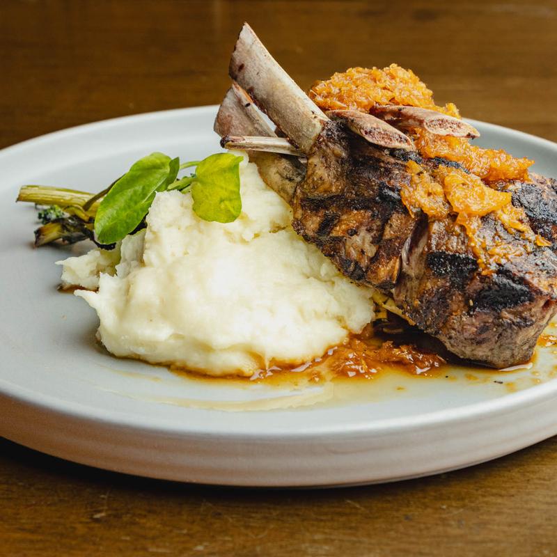 Whipped potatoes, seasonal vegetables, classic steak sauce